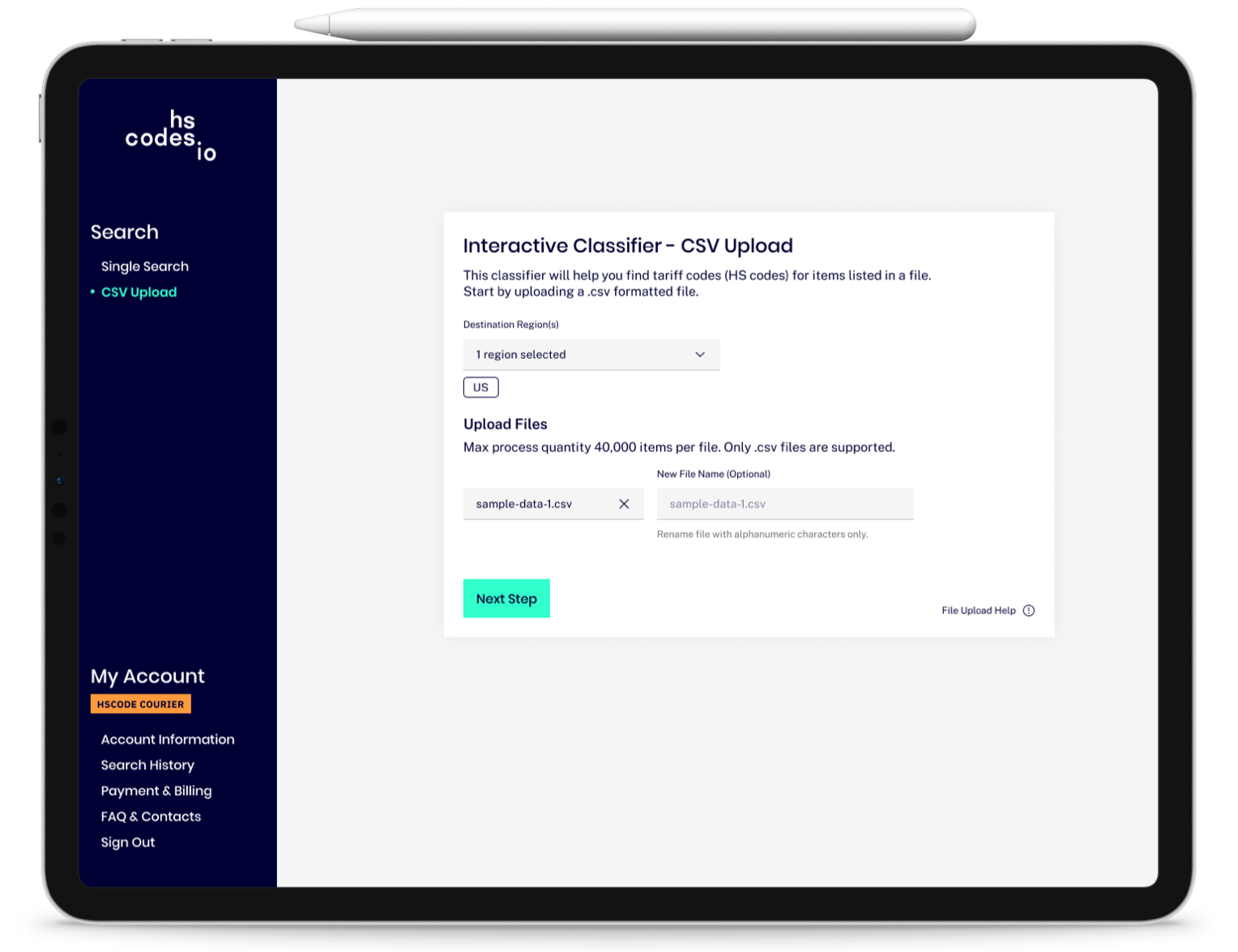 Tools already exist to help business owners learn the system, but what if we removed the learning curve altogether? Our client developed an AI solution that analyzes a product description and searches through thousands of codes to find the right match. With the technology in place, they only needed a user-friendly interface to create a time-saving tool anyone can use.