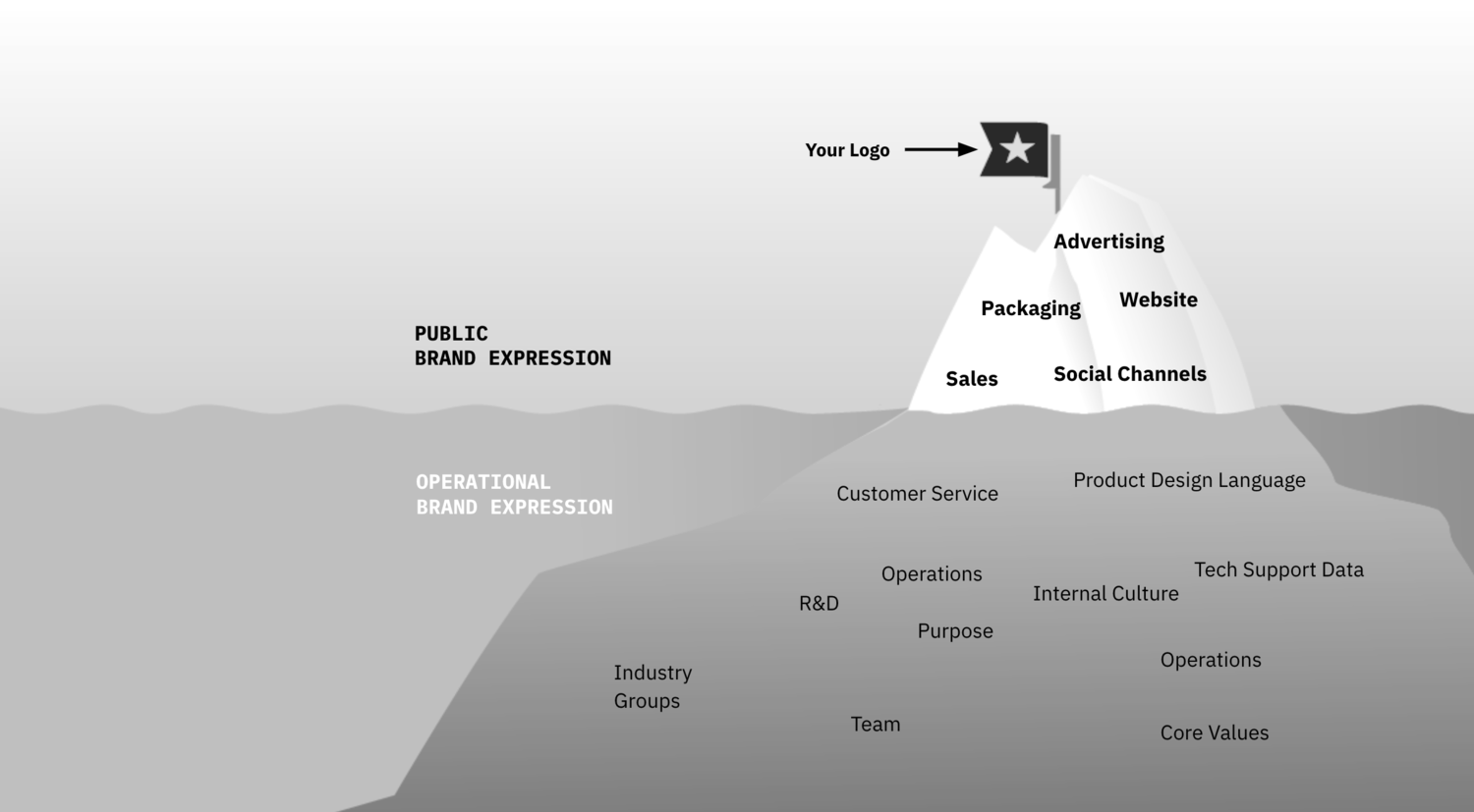 First, let's agree that it is NOT a logo, a PMS color, or a tagline. Although those are essential brand expressions, they are the proverbial tip of the iceberg. In our brand maturity model (and in models created by other firms) these external representations, along with other communications vehicles, are precisely that, representations of your organization's INTERNAL values, culture, methodologies, and operational style.