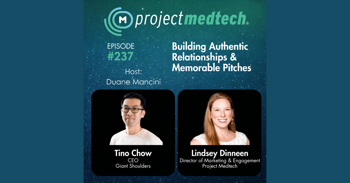 On episode 237 of the Project Medtech Podcast, our founder Tino Chow joins Duane Mancini and Lindsey Dinneen to dive into the intricacies of pitching.
