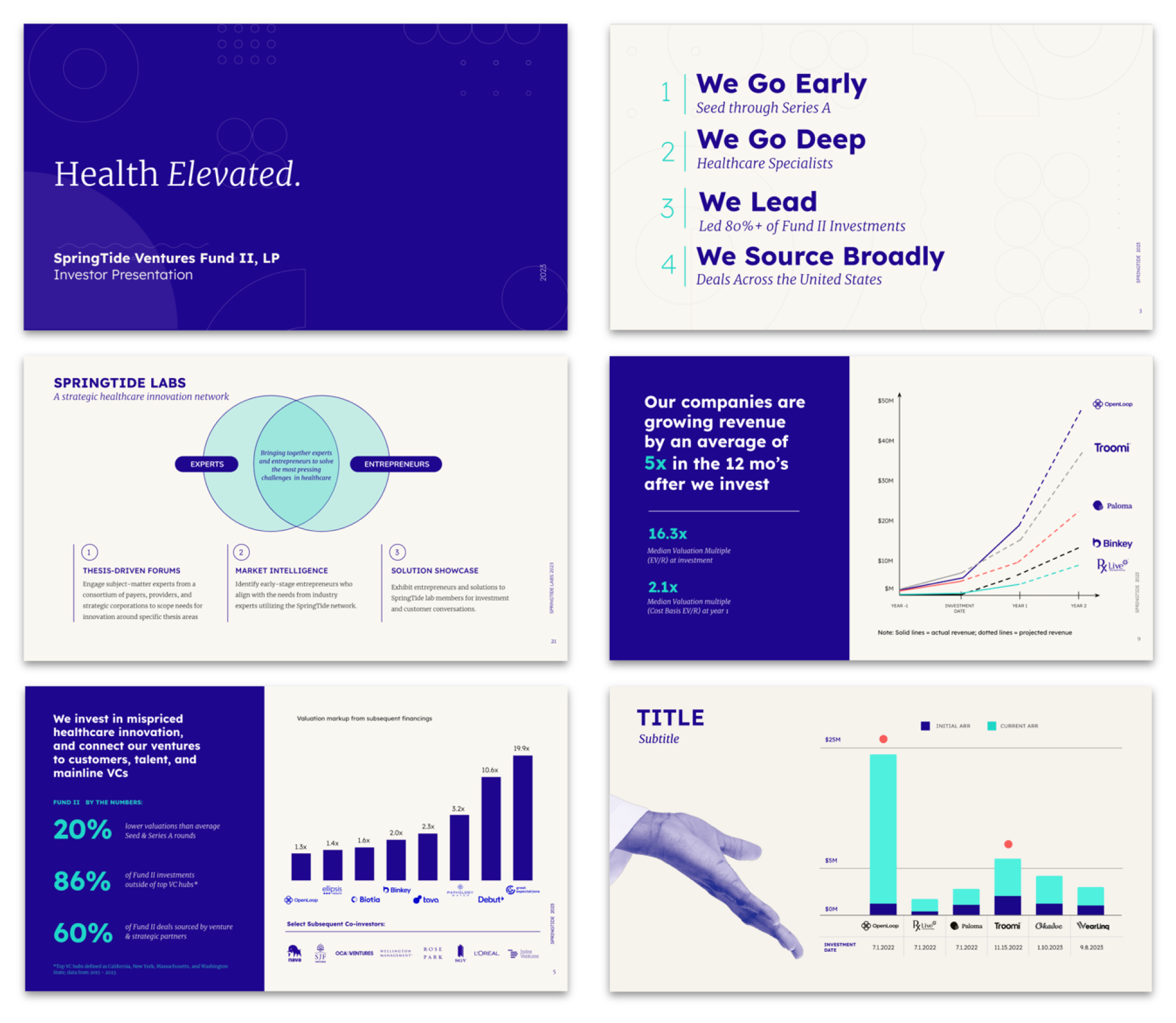 Launching a fund means instantly proving credibility. For SpringTide’s first fund, we built a brand that stood out and earned investor trust. With their second fund, we refined the look to signal stability and reliability. By Fund 3, SpringTide had developed a distinct voice and was emerging as a medtech thought leader.
